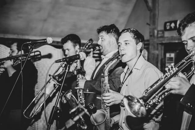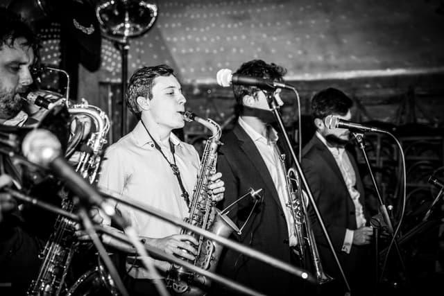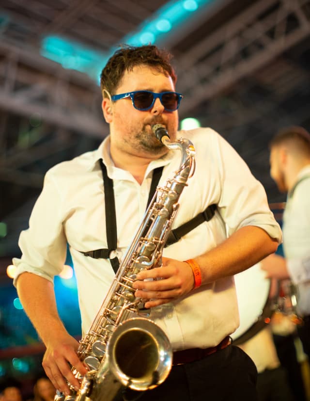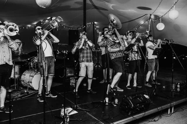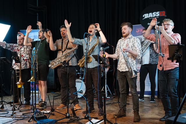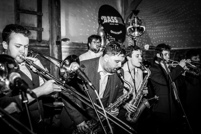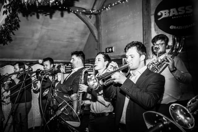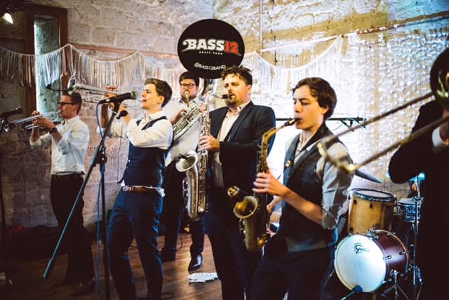 Bass12 are a riot jazz, brass covers band guaranteed to liven up any event bringing huge horns, dangerous drums and sumptuous sousaphone to the dance floor.