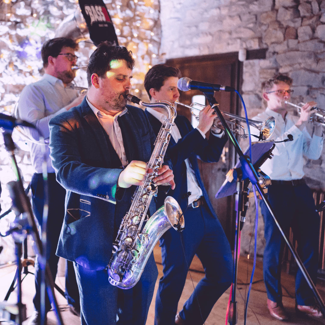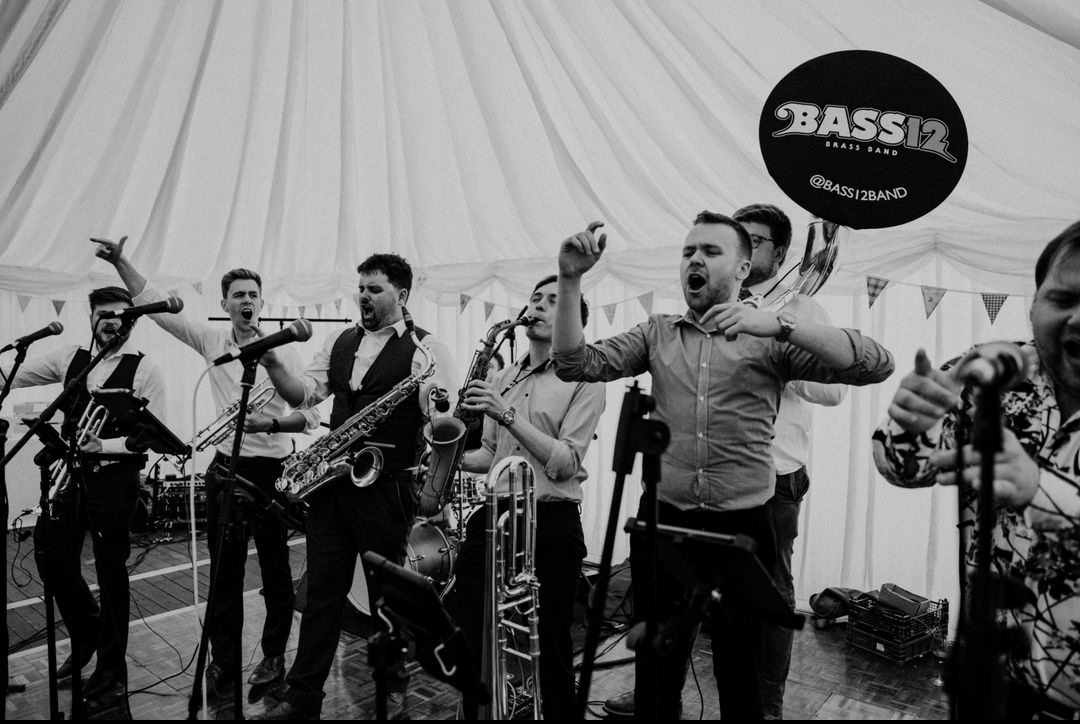 We wanted something a bit different for our wedding band & Bass12 delivered! It was incredible to see all our guests living it up on the dancefloor to awesome brassy tunes. Bass12 were super helpful with the booking process & made it the easiest part of our wedding to plan. Overall, a group of genuinely nice talented guys who know how to get a party going!!