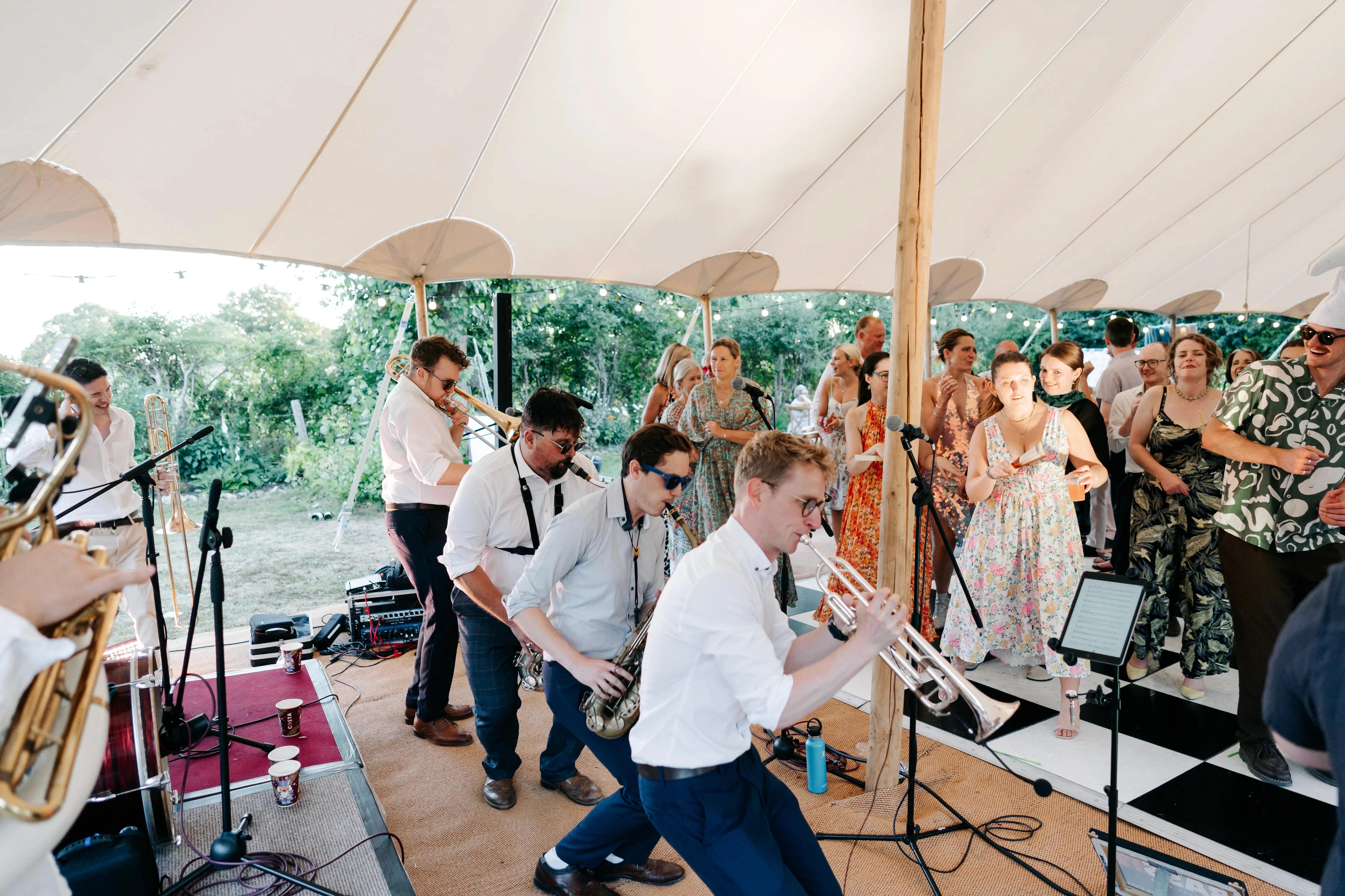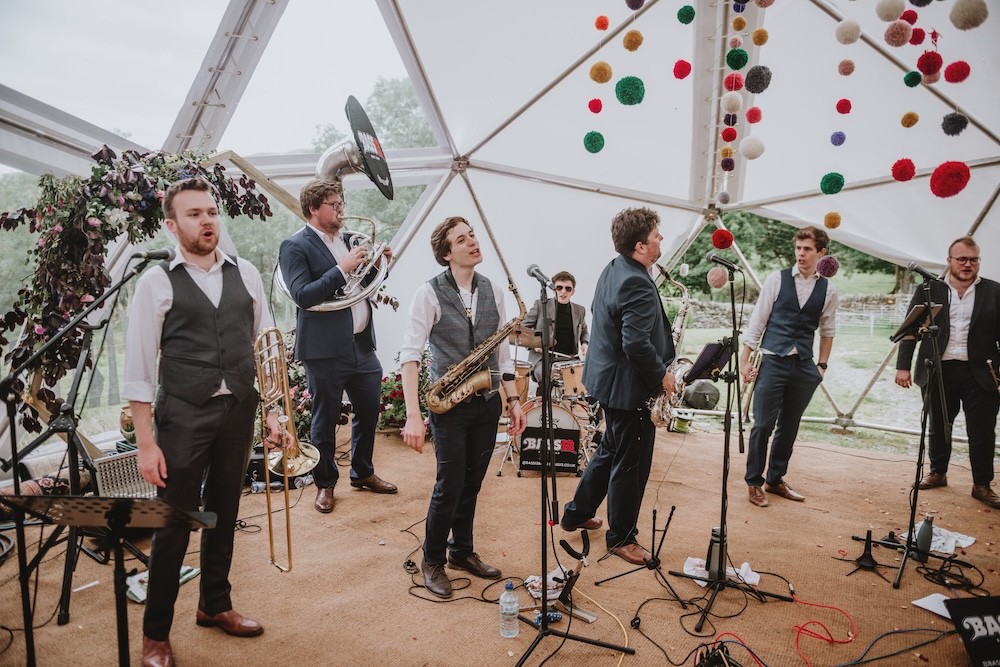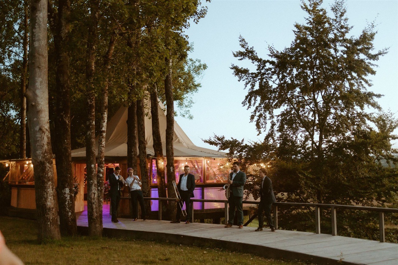 The two evening sets, performed in a giant tipi were brilliant, including our first dance which they did a special arrangement for. The band have an infectious energy which they maintain the whole evening and it is infectious. They got everyone dancing, young and old and nobody wanted it to end! We have been to lots of weddings and I know we are biased as this was our wedding but they were the best band we have seen at a wedding! All our guests could not stop raving about them!