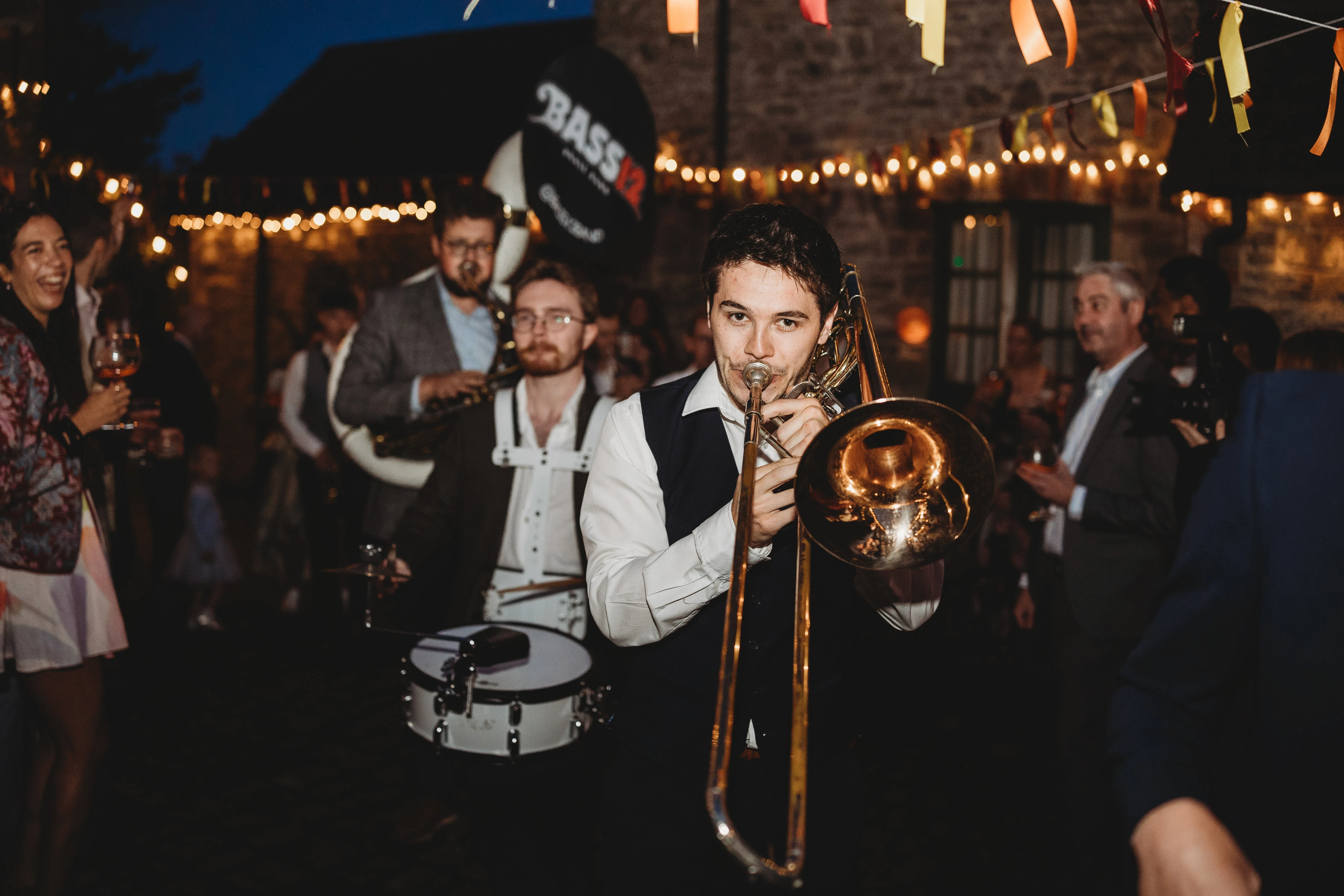 We booked a 5-piece version of Bass12 as a surprise for our guests following our wedding ceremony and they didn't disappoint! They held back and set up in secret and played across our reception drinks. They were the perfect party-starter for a joyful day and had everyone clapping and dancing along (several hours before I think most people expected to be!) - we've had so many guests mention Bass12 as a highlight of the day. The communication was really clear and Mark listened and advised us along the way, and ended up creating exactly what we imagined. Thanks so much!